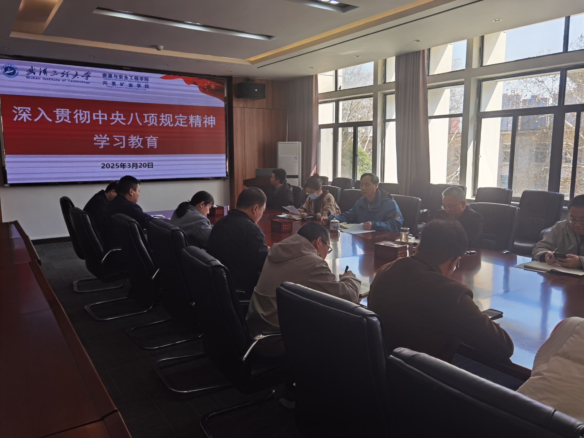 何东升院长传达了湖北省委常委会部署开展深入贯彻中央八项规定精神学习教育的会议精神,要求要统一思想、提高站位,切实把开展学习教育作为坚定捍卫“两个确立”、坚决做到“两个维护”的具体实践,作为推动全面从严治党向纵深发展的重要抓手,作为践行新时代党的群众路线的有利契机,不折不扣抓好贯彻落实。要力戒形式主义,注重把深化整治形式主义为基层减负的要求贯穿学习教育全过程、各方面,坚决杜绝形式主义、官僚主义问题,确保学习教育有力有效开展。