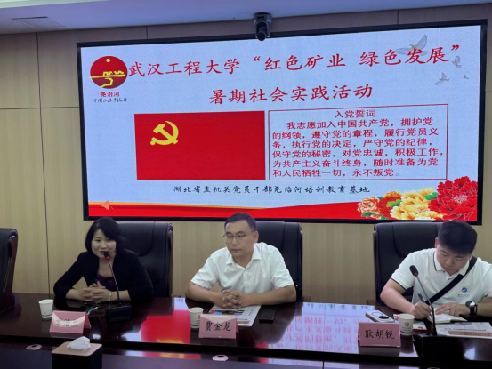 在湖北省直机关党员干部尧治河培训教育基地举行了社会实践基地挂牌仪式,保康县副县长贾金龙、尧治河村党委委员章治兰、学院团委负责人耿胡锐、学院“红色矿业,绿色发展”社会实践团成员参加了仪式,会议由耿胡锐主持。