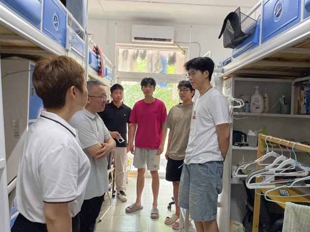 班子成员一行走访研究生实验室、学生宿舍,开展了暑期慰问活动。