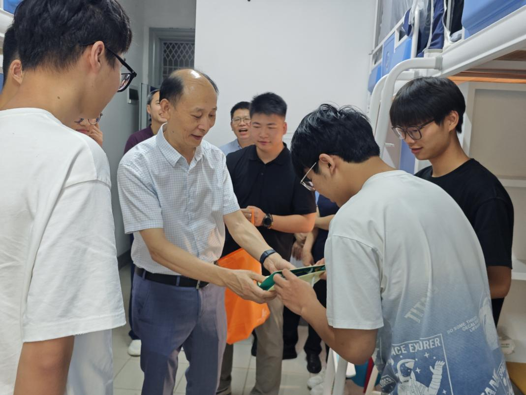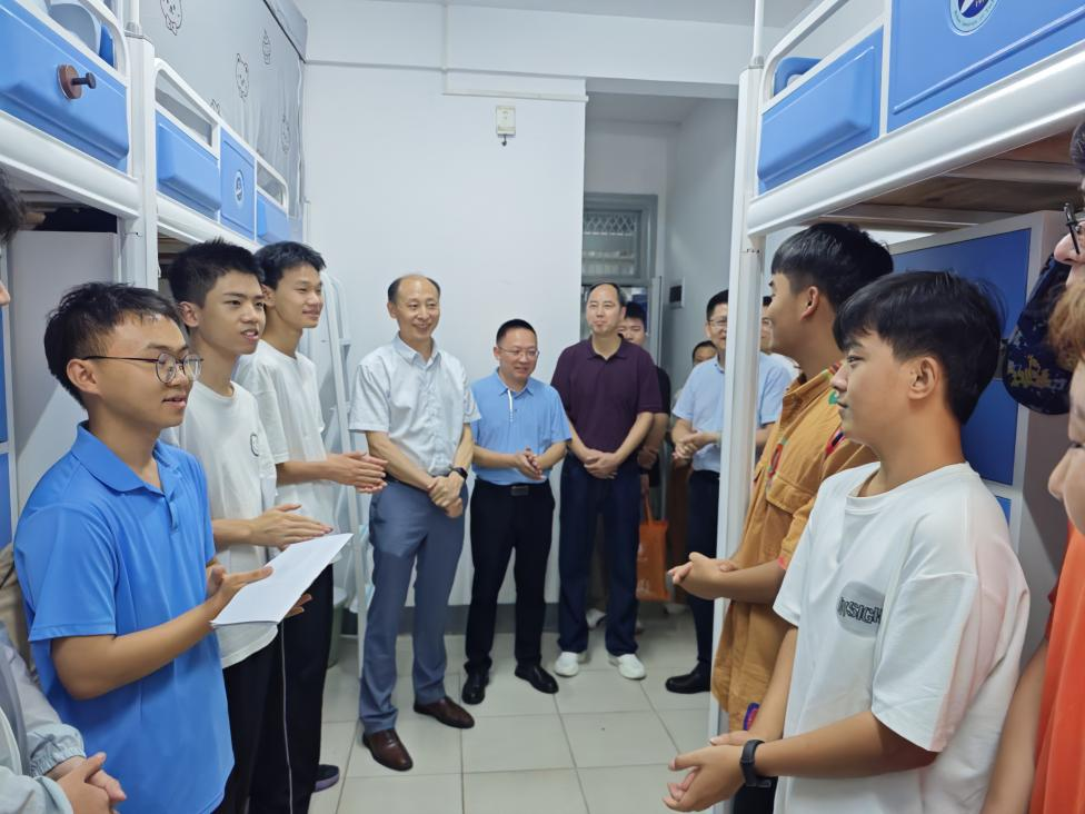 本网讯(通讯员 王祥祥)为深入了解2025级新生入学情况,引导新生尽快适应大学学习生活,9月15日,校党委常委、副校长喻发全带队深入学院学生宿舍慰问2025级新生。学校本科生院党总支书记杨克平、浪live