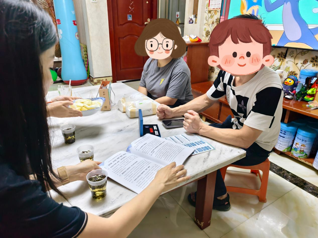 家访团的第二站来到大四学生小Z家中。作为一名毕业年级正在备战考研的学生,小Z面临着失眠和心理压力的困扰。2022级辅导员黄橙关切地了解学生在家的情况,家长表示,小Z是长姐,对父母经常是报喜不报忧。针对她的心理压力,家访小组现场指导了“合理作息+科学复习”的备考方法。学院心理健康辅导员王耀眉递给家长学校心理健康中心制作的《家庭心理健康教育指导手册》,并详细介绍了学校心理健康中心的资源和咨询服务。“孩子考研压力大,我们看着心疼又无助,没想到学院的老师能不远千里上门来给她做指导,真的太感谢了!”小Z的母亲感动地说。