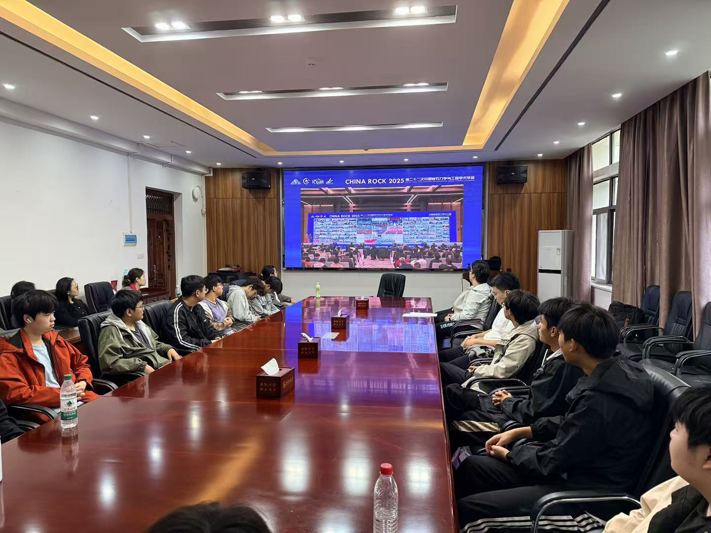 组织本科生和研究生同学参与此次会议。同学们在卫星会场,通过在线直播的形式,共同观看了会议的开幕式及各项主题报告,内容涵盖了地灾预报AI大模型、深层岩石力学、极端环境下的隧道工程挑战、循环气压下地下储气库围岩岩石力学特性、压缩空气储能技术进展等重要议题。