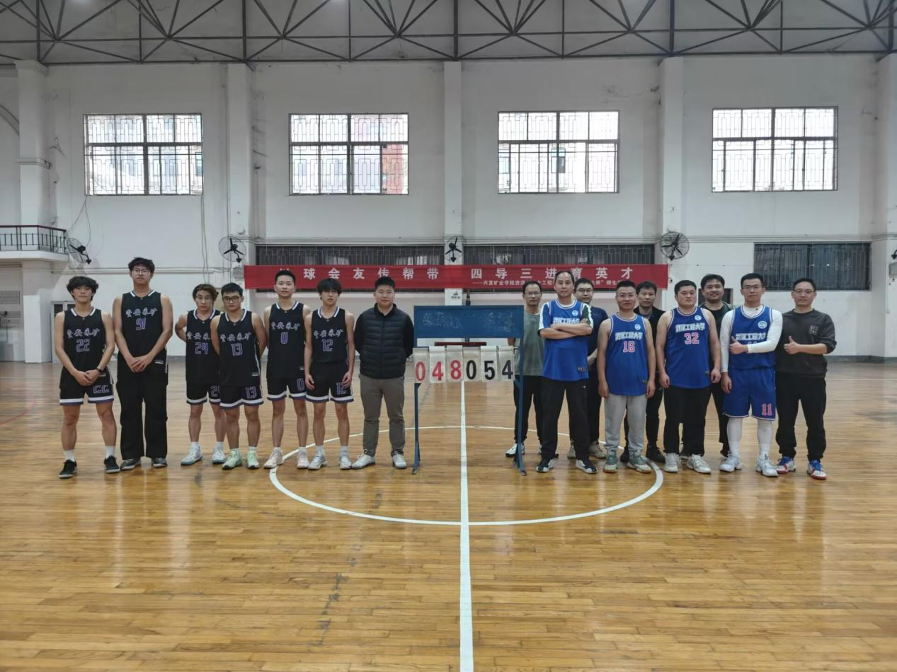 本次赛事以“以球会友传帮带,四导三进育英才”为主题,吸引了学院师生到场观赛。比赛伊始,新生代表队凭借充沛体能展开快速攻势,通过穿插跑位与外线投射多次撕开防线,一度将比分紧咬;教师代表队则依托战术经验与默契配合,以稳定的阵地传导和关键防守逐步拉开分差。赛场上,抢断、快攻、盖帽等精彩瞬间接连上演,双方你来我往、每一次进球都引来场下观众的阵阵欢呼与喝彩。终场哨响,记分牌定格在“54:48”,教师代表队凭借更成熟的临场应对锁定胜局。