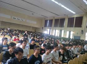 约200名学生在武昌校区大礼堂与田径场参加了交通安全知识讲座及铁骑表演系列活动。