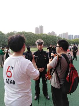 学校保卫处处长吕容涛接受中国交通武汉频道电视采访。