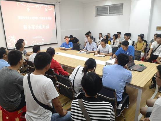 江本武以“我们是一个什么样的学院”为切入点,着重介绍了学院的概况,以及办学历史、师资队伍和学生培养等内容,并对新生家长提出了三点希望:一是常关心孩子、与孩子多沟通,支持孩子独立;二是常联系学校、达到家校共同育人;三是多宣传学校、学院。