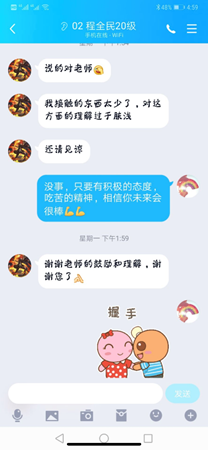 来自河北籍的20名学生一直牵动着辅导员孙奕的心,通过“一对一”的电话沟通交流,在确保所有学生自身安全的前提下,辅导员孙奕认真倾听同学们的假期分享,及时告知家长和学生学业情况、返校要求,做好思想教育管理和重点关爱引导,为学生和家长排忧解难,送去特殊时期的特别关怀和新春祝福。