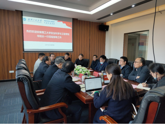 党委书记路海华从学校办学特色、学院历史沿革、人才队伍、学科特色、科研平台和成果方面也进行了深入的介绍。此外,双方就安全工程学科建设、课程设置和人才队伍引进方面进行了探讨。