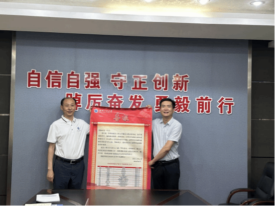 喻发全代表学校向恩施高级中学、恩施一中授予优质生源基地牌匾并送去就业喜报,期待更多优秀学子加入浪live