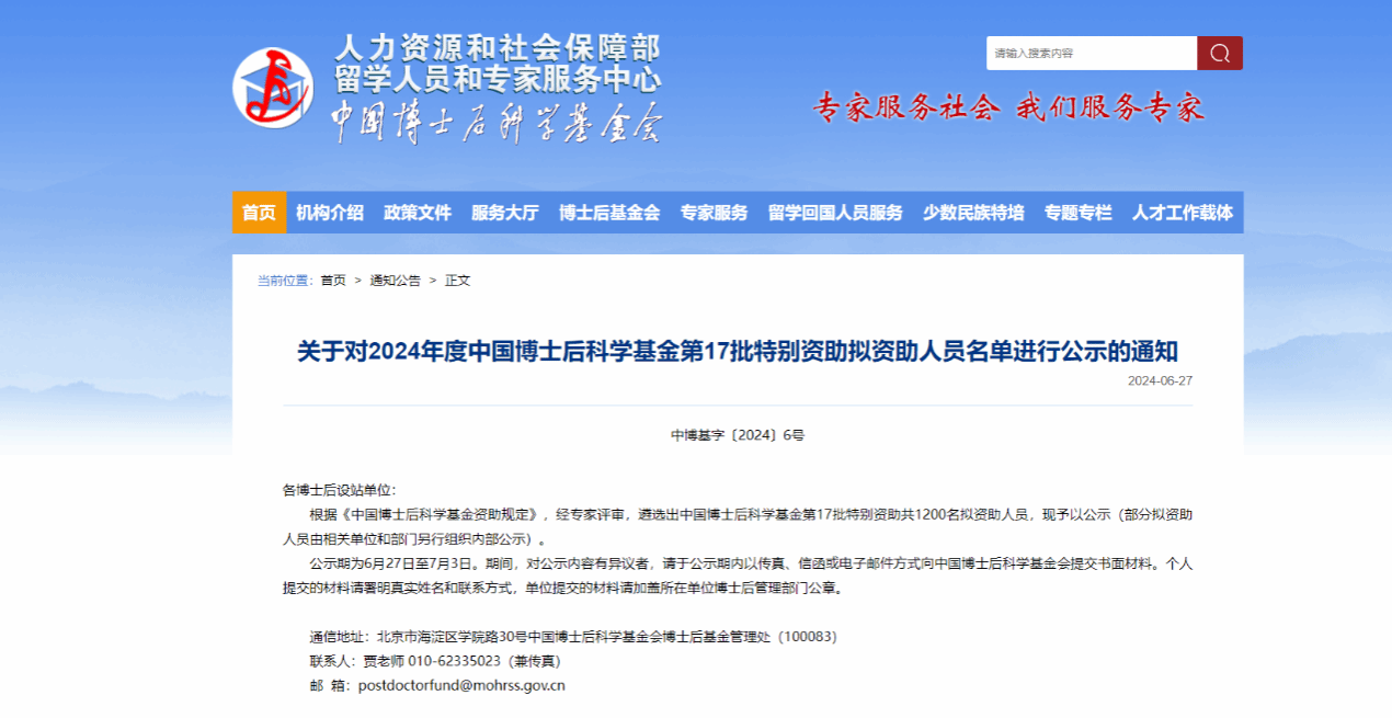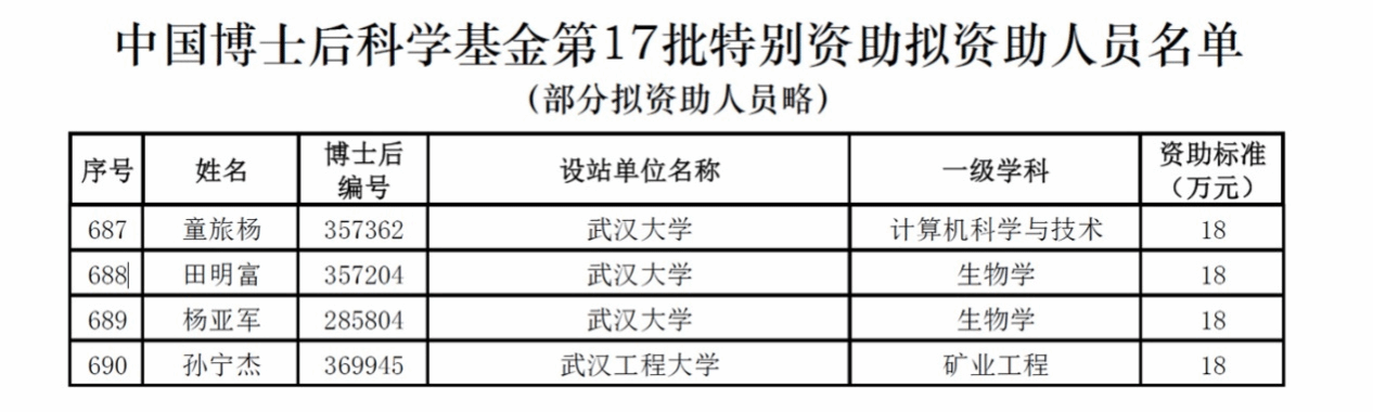 近日,中国博士后科学基金会公布了第17批特别资助人员,浪live