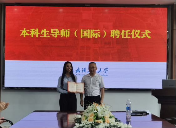 与其他班级不同的是,除了学院教授担任本科生班主任外,学院还为班级配备了“洋”老师担任本科生(国际)导师。学院院长何东升为摩洛哥国立拉巴特高等矿业学校(Ecole Nationale Supérieure des Mines de Rabat)拉巴特矿业学院的教授AARAB IMANE 颁发了本科生(国际)导师聘书。