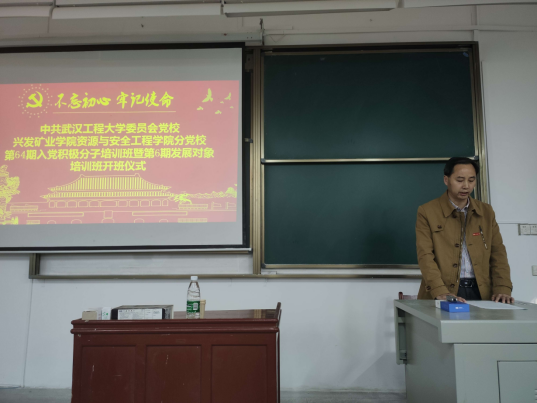 资源安全与工程学院第64期入党积极分子暨第6期发展对象培训班开班典礼在W2131教室举行。学院党委书记、分党校校长江本武,院党委副书记、分党校副校长李佳、院党务干事杜娟出席了开班典礼,91名党校新学员参加。开班典礼由本期党校培训班班主任孙奕主持。