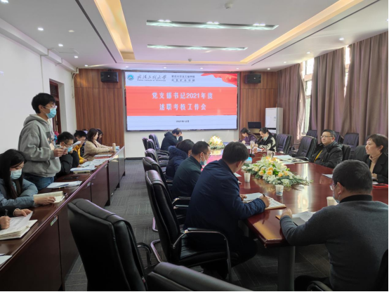 本网讯(通讯员 王耀眉)为进一步增强学院党建工作的针对性和实效性,全面落实党支部书记为支部建设第一责任人的要求,2021年12月23日,学院党委组织召开了2021年度党支部书记抓党建述职评议考核暨党支部书记培训会,学院全体党委委员、各党支部书记、党支部副书记、支部委员和师生党员代表参加会议。