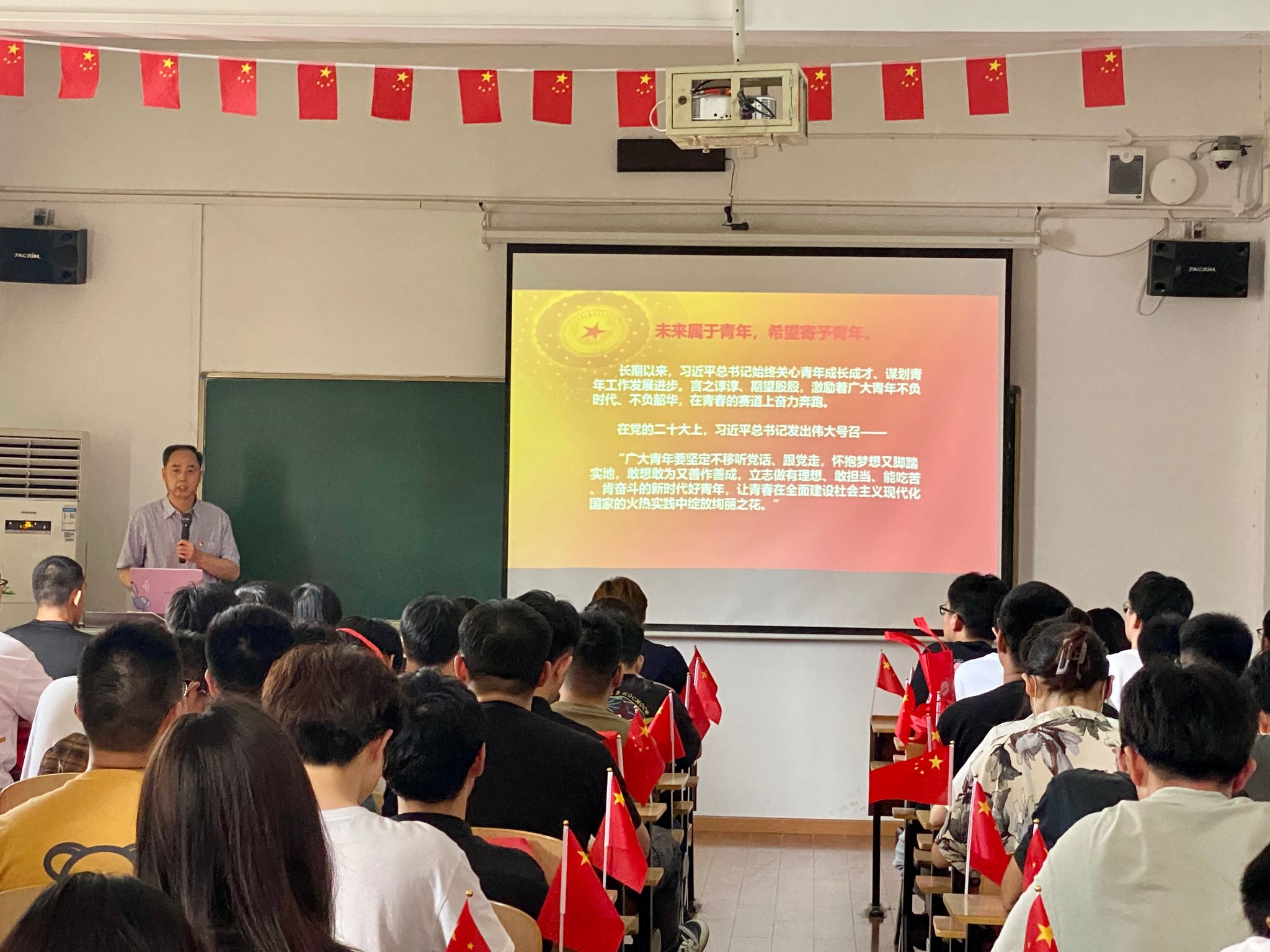 开展主题教育,筑牢理想信念。学院党委书记江本武为全体毕业生党员讲授题为“听党话、跟党走,让青春在实践中绽放绚丽之花”的党课。江书记带领毕业生党员领悟习近平总书记对青年的寄语,希望党员同志要保持矢志奋斗、实干笃行的劲头,积极响应党和国家号召,到祖国最需要的地方建功立业,在平凡岗位上取得不凡业绩,让青春年华在为党和国家、为人民的奉献中焕发出绚丽光彩。