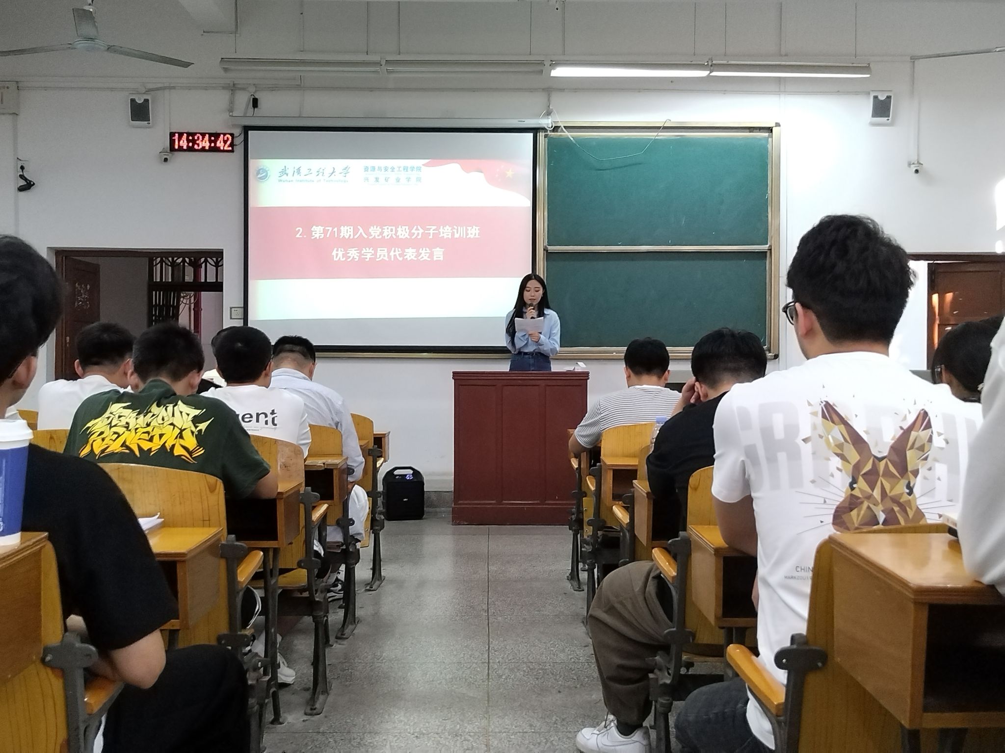 在雄伟的国际歌后,第71期入党积极分子优秀学员代表2022级研究生邓名慧、拟发展对象学员代表2021级本科生闫梓萱依次上台发言。他们代表全体同学郑重承诺将认真严肃对待每一节党课,不断提高思想认识,补足精神之钙,在学习和生活中以一名党员的标准严格要求自己。