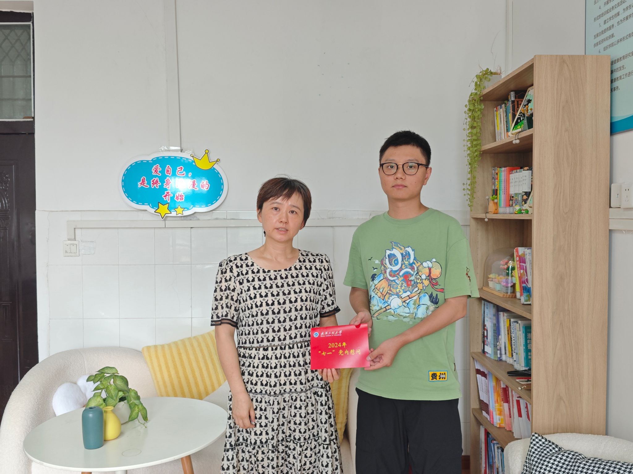 走访慰问困难党员。学院党委副书记李佳代表院党委给学院困难党员送上慰问信,带去了党组织的关怀和节日的问候,并深入了解了困难党员的学习生活情况、身体状况、家庭情况以及目前遇到的实际困难,勉励他要不忘初心、牢记使命。