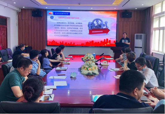 并就我们从党史中学什么,我们怎么学好党史展开讲授。我们学习党史,要明确一个最根本的问题,即中国共产党从哪里来、到哪里去,初心和使命是什么;中国共产党历史的主流和本质是什么;中国共产党带领全国人民创造的根本成就是什么。我们要坚持以史为鉴,从党的百年伟大奋斗历程中,学史明理、学史增信、学史崇德、学史力行,以党史洗涤心灵之尘、以党史激发奋进之力。