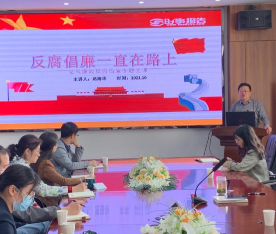随后,路海华讲授了题为《反腐倡廉一直在路上》的主题党课。他从政治纪律的概念展开,介绍了反腐倡廉新成就,厘清有关反腐败的错误言论,强调各党员干部应当算好七笔账,重塑“不想腐”的社会廉洁价值观。