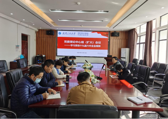 在领创大楼419会议室召开院党委理论学习中心组扩大会,学习贯彻党的十九届六中全会精神。院党委理论学习中心组全体成员、教工党支部书记、学院辅导员等参加学习,院党委书记路海华主持会议。