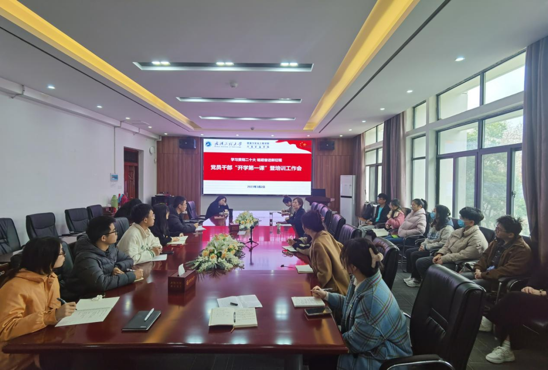 在419会议室召开学生党员“开学第一课”暨培训工作会,会议邀请了思政导师马克思主义学院教师董婷讲授开学第一课。学院党委书记江本武、党委副书记李佳、各学生党支部书记和支部委员参加会议,党务干事王耀眉主持会议。