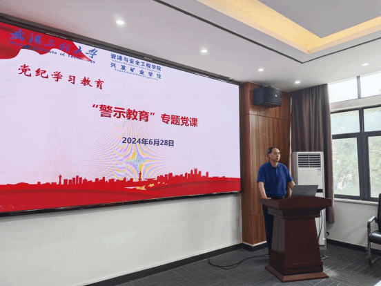 在领创大楼419会议室开展警示教育专题党课,学院党委书记江本武讲授党课,学院党委委员、全体党支部书记参加学习。