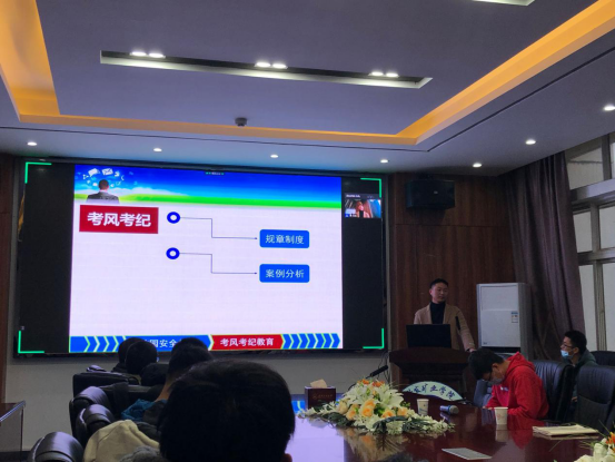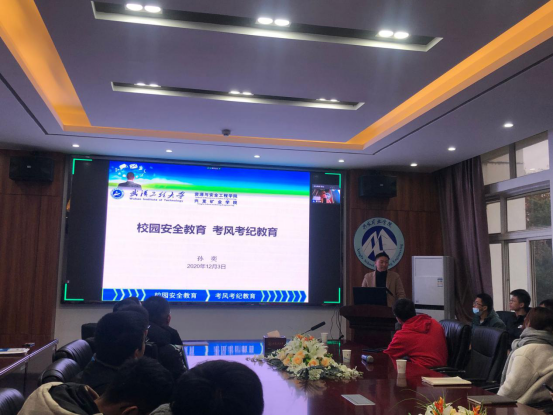 在武昌校区领创大楼419会议室举行了校园安全教育暨考风考纪教育大会。学院党委副书记李佳出席会议、学院全体本科生和研究生以线上线下的形式参与此次大会,大会由辅导员孙奕主持。