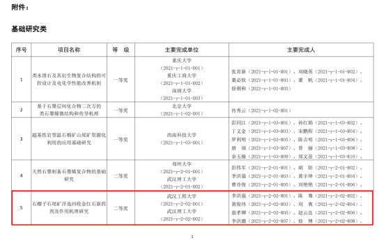 青年教师李洪强副教授牵头的项目《石榴子石尾矿浮选回收金红石新药剂及作用机理研究》获“非金属矿科学技术奖”基础研究类二等奖。