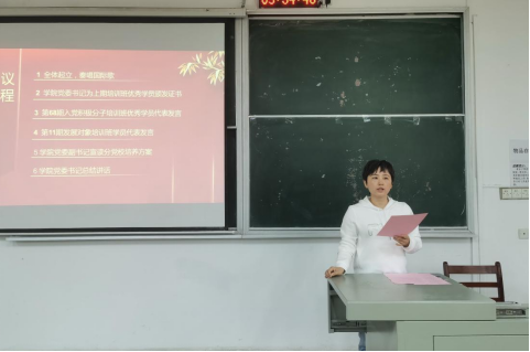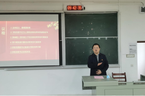 春季学期党校培训班开班典礼于武昌校区二教学楼2301教室举办。学院党委书记路海华,党委副书记李佳,全体辅导员出席了此次开班典礼,典礼由带班老师王耀眉主持。