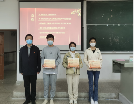 首先,由学院党委书记路海华为上一期培训班优秀学员颁发荣誉证书。接着,第68期积极分子优秀学员代表2021级研究生王美、本期发展对象学员代表2019级本科生杨强依次上台发言。他们代表全体同学郑重承诺:作为新世纪的新青年,将认真严肃对待每一次学习,努力实践,开拓进取,勇于创新,不断提高自身素质。