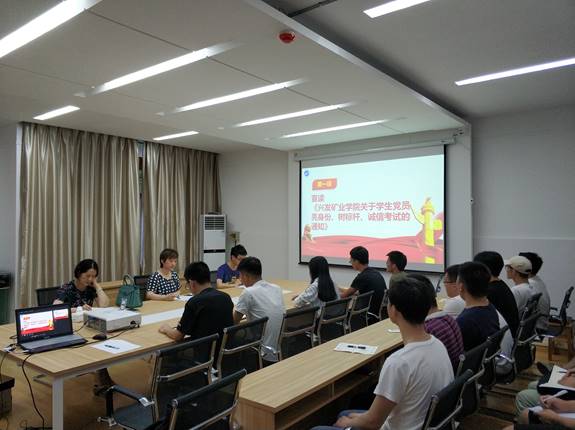 在201会议室开展了“亮身份、树标杆、诚信考试”主题教育。学院党委副书记李佳、辅导员李昊昱、组织员杨继娟和学院全体本科生党员参加了会议。