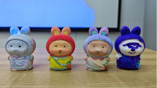 两个小时的创作,伴随着轻柔舒缓的音乐,同学们都创作出了自己满意的花朵石膏,相互展示着自己的创作成果,介绍着自己关于色彩运用的想法。期间,同学们轻蘸颜料,反复调试花瓣的渐变色调;屏息凝神,用细笔勾勒叶脉的纤毫纹理。随着画笔游走,原本素白的石膏花逐渐焕发生机。