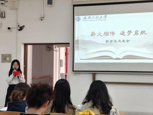 团委暨学生会学术调研部在武昌校区二号教学楼W2301教室组织开展“薪火相传,逐梦启航”新老生交流主题班会活动,新生辅导员王祥祥老师、学生团委副书记王艺樨、主席团成员以及部分优秀学生代表出席了本次活动。