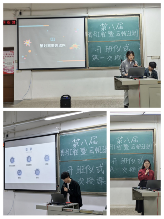 在第一次授课环节,王润霖、杨昊、罗李静三位讲师分别为学员讲授礼仪规范、PPT制作技巧以及活动策划撰写方法。课程内容丰富实用,学员们认真听讲、踊跃提问,与讲师积极互动,现场学习氛围浓厚。