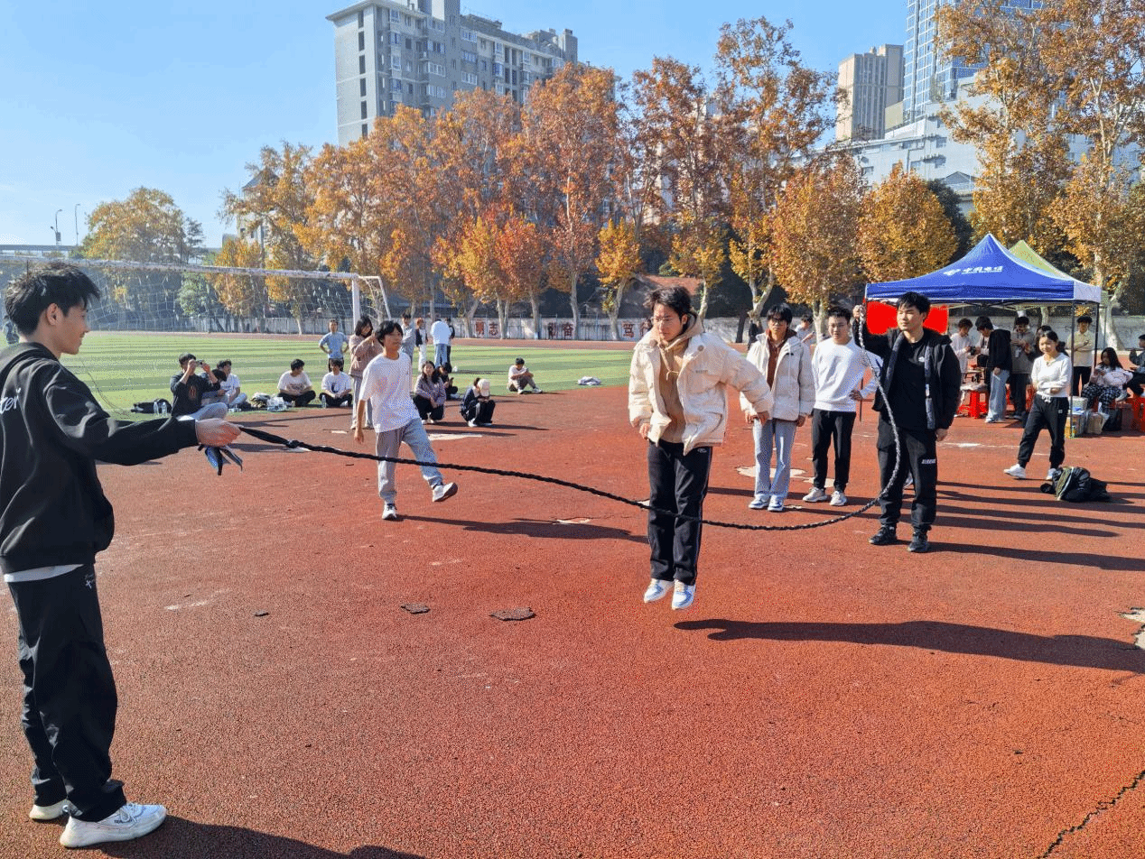 武昌校区“一站式”学生社区举办“妙趣乘风起,携手共青春”主题团日活动。本次活动包含“趣味拔河”“八字跳绳”“趣味三子棋”“一圈到底”四个内容。学院团委指导老师耿胡锐、学生团委副书记王艺樨、主席团成员、学院全体团学骨干、2025级新生参加了本次活动。