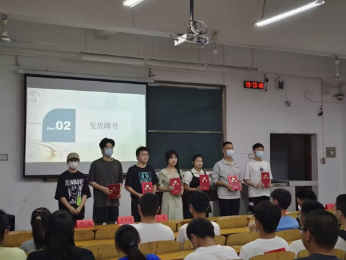 活动开始,黄橙和郑浩然老师依次对2022级新生的到来表达了真切祝福,希望他们在未来的四年大学生涯中砥砺前行。他们的精彩发言直接调动起现场的活动氛围。新生辅导员黄橙为新生副班主任颁发了聘书。