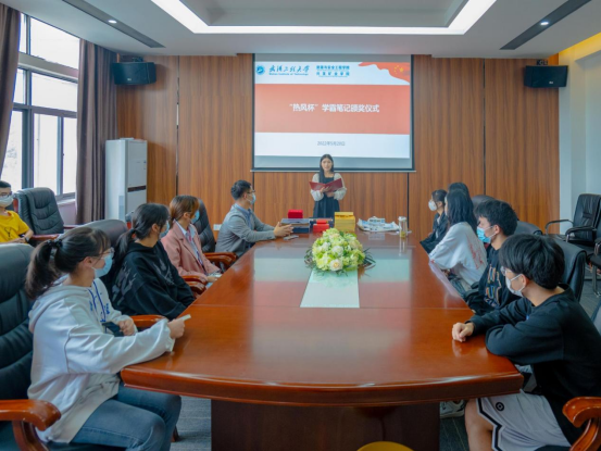 2022年学风建设月实施方案》安排部署,5月20日,学院在领创大楼414会议室举行了“热风杯”学霸笔记颁奖仪式,相关获奖学生和学院辅导员郑浩然参加了仪式。