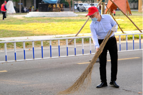 本次清扫小队由学院部分教职工党员和学生入党积极分子组成,师生分工协作,打扫广场内外的落叶、灰尘、杂草和垃圾,让许志伟广场焕然一新。