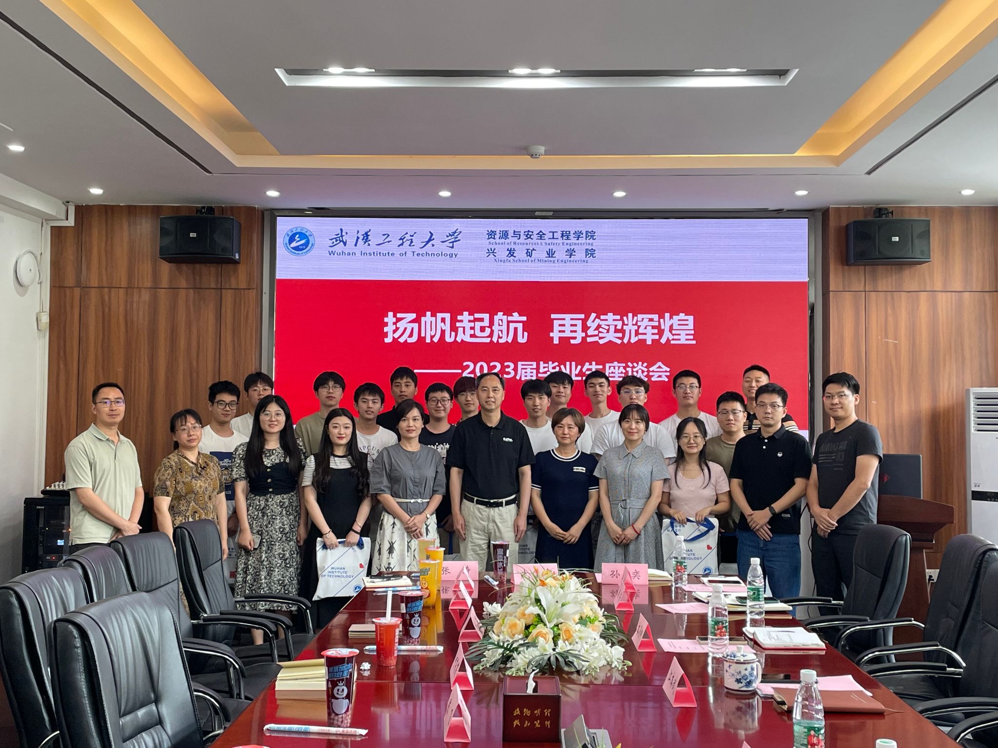 召开2023届毕业生座谈会。学院党委书记江本武、副院长周芳、吝曼卿、导师代表与2023届的毕业生代表们围坐一起,交流收获,畅谈未来。会议由学院党委副书记李佳主持。