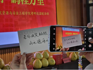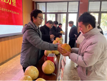 12月21日中午,学院领导、班主任为考研学子发放写满祝福语的加“油”柚,寓意成功的旺仔牛奶和加油卡片,鼓励他们在最后的时刻保持好心态,抓住机会、迎难而上,努力实现考研梦想。