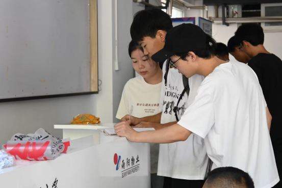 新生进校当天,迎新工作有条不紊地进行着,新生刚抵达校门,便被自己的专属志愿者一一认领,享受“拎包入住”一站式入学报到服务,他们热情细心地引导新生报到,为新生介绍校园环境、讲解水电卡办理流程等。