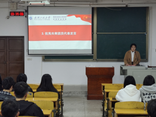 学院第六期“青马工程”培训班优秀团员代表王艺樨分享了自己对于新时代青年团员的时代责任和历史使命的认知,号召全体学员在培训过程中努力学习马克思主义基本理论,在思想和行动上积极向优秀党员和团员学习,用马克思主义思想武装自己的头脑。为全面建成社会主义现代化强国而努力奋斗。