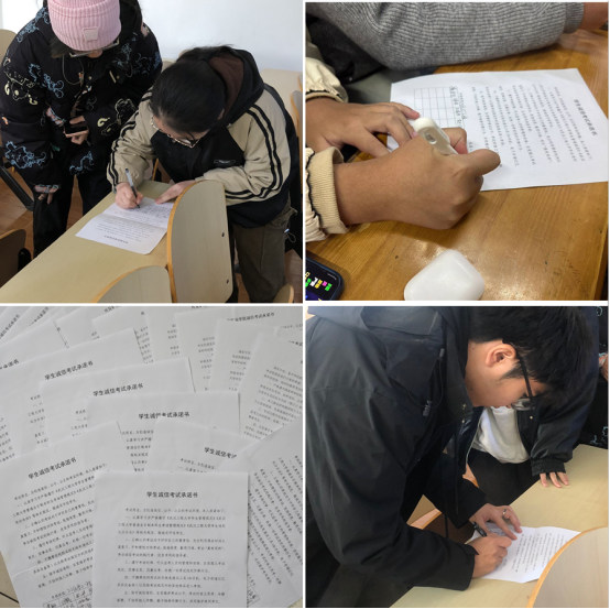 此外,各班还组织了集中签订“考试诚信承诺书”活动。同学纷纷在“考试诚信承诺书”上郑重地签下自己的名字,表达了自己将严格遵守考试纪律,坚决抵制任何形式的作弊行为的决心。