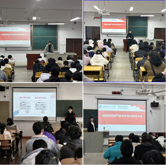 学院本科班级和研究生班级开展了“诚信考试 从我做起”主题教育班会,集中学习了考试作弊处分案例和《国家教育考试违规处理办法》《浪live