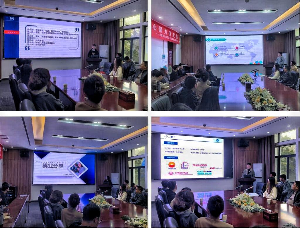 会上,来自四个不同专业的2023届研究生代表陈飞、黄帅、冯金婵、王广帅同学分别作了经验分享。分享内容全面细致,涵盖了求职过程中的自我探索、观念树立、求职技巧、面试准备、心态调整等各个方面。