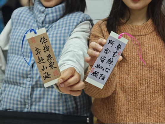 在活动尾声,每位参与活动的师生都收到了一枚 “祝福书签”,作为活动的纪念与祝福。书签上书写着祝愿,让这份温暖传递至活动之外。