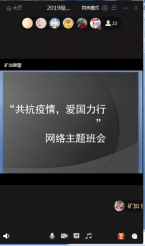 3月21日,19级兴发二班在腾讯会议平台顺利举行“共抗疫情 爱国力行”网络主题教育活动,活动由班长肖振航主持,19级兴发二班全体成员参加。会上肖振航同学先为大家宣读了此次教育活动的主要目的和要求,并简要介绍了班级活动的基本流程。随后由19级兴发二班全体同学分别分享学习材料,供大家学习,大家分享的材料包含活动内容的各个方面,分别就“培养家国情怀,担当青春使命”、“筑牢安全底线,遵守防控要求”、“落实教学安排,有效自主学习”、“加强健康教育,增强防护能力”四方面展开。经过一个多小时的学习,同学们完成了学习任务。