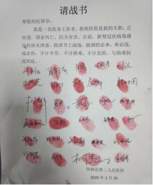 阳新县第二人民医院职工请战书