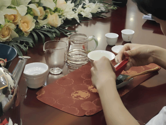 活动现场,同学们在潺潺音乐声中一起观茶形、闻茶香、品茶味,分享自己的品鉴感受和各自家乡的茶文化,共同交流彼此的生活体验和感悟。