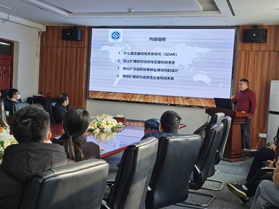 )的老师和同学们做了这次学术报告。孙伟教授从矿物浮选体系里面所涉及的颗粒表面、药剂分子、气泡、流体四个方面深入剖析了矿物加工基础研究的内涵与外延,并针对白钨矿浮选体系面临的难题,从矿物表面性质、常规浮选药剂缺陷、捕收剂分子结构与选择性定量构效关系及分子设计等方面详细介绍了其研究团队的探索经历及研究成果,进而延伸到铝土矿、铁矿、磷矿等其他矿物浮选体系的研究思路与方法。孙教授诙谐幽默,无论是浮选基础研究,还是顶级医学领域药剂分子设计、电池电化学机理,均能以生活中的小细节为例来具体介绍,报告内容丰富,通俗易懂,生动有趣。孙伟教授的精彩分享让在场的师生开阔了学术视野,对专业基础研究和理论学习均起到极好的推进作用。