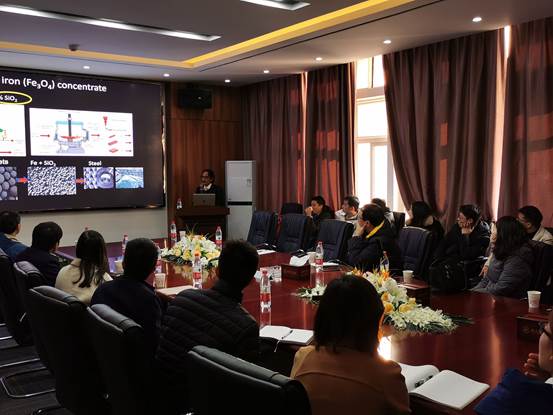 老师和同学们做这次学术报告。Alejandro Lopez-Valdivies教授详细介绍了该项目的研究背景,深入地分析目前国内外铁矿脱硅的研究进展并揭示了导致铁精矿中石英夹杂的机理,在此基础上了开发出一种新的提铁降硅设备,并对传统工艺进行优化。另外,Alejandro Lopez-Valdivies教授详细汇报了近些年他在硫化矿浮选领域的研究成果,此次报告内容丰富,题材新颖,信息量大。
